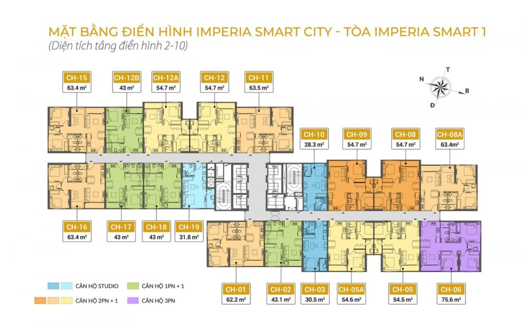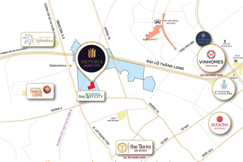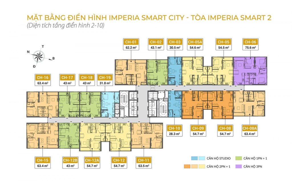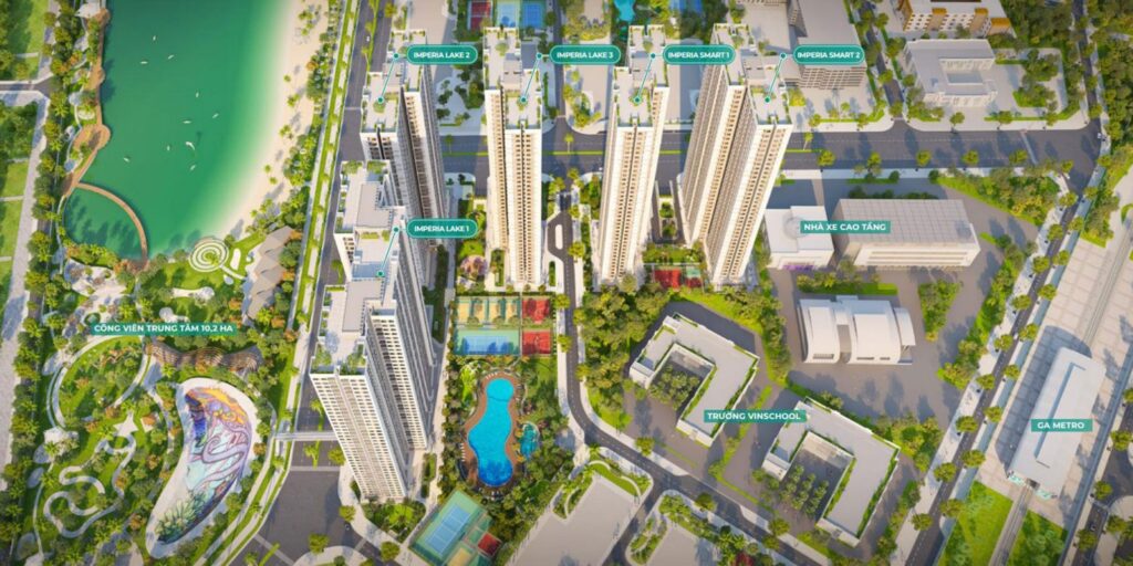 - Giai đoạn 1: Bao gồm 2 tòa Imperia Smart 1 & Imeria Smart 2 (thuộc lô đất F4CH05) nằm bên trong nội khu (Đã mở bán).