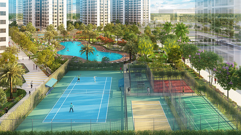 Imperia Tây Mỗ còn sở hữu hàng loạt các sân thể thao ngoài trời, bao gồm 2 sân tennis, 1 sân cầu lông, 5 sân bóng rổ, 5 sân bóng chuyền. Như vậy, không cần phải đi ra tận công viên Sportia Park, bạn cũng có thể thỏa sức bên trái bóng tại ngay trong khu căn hộ của mình.