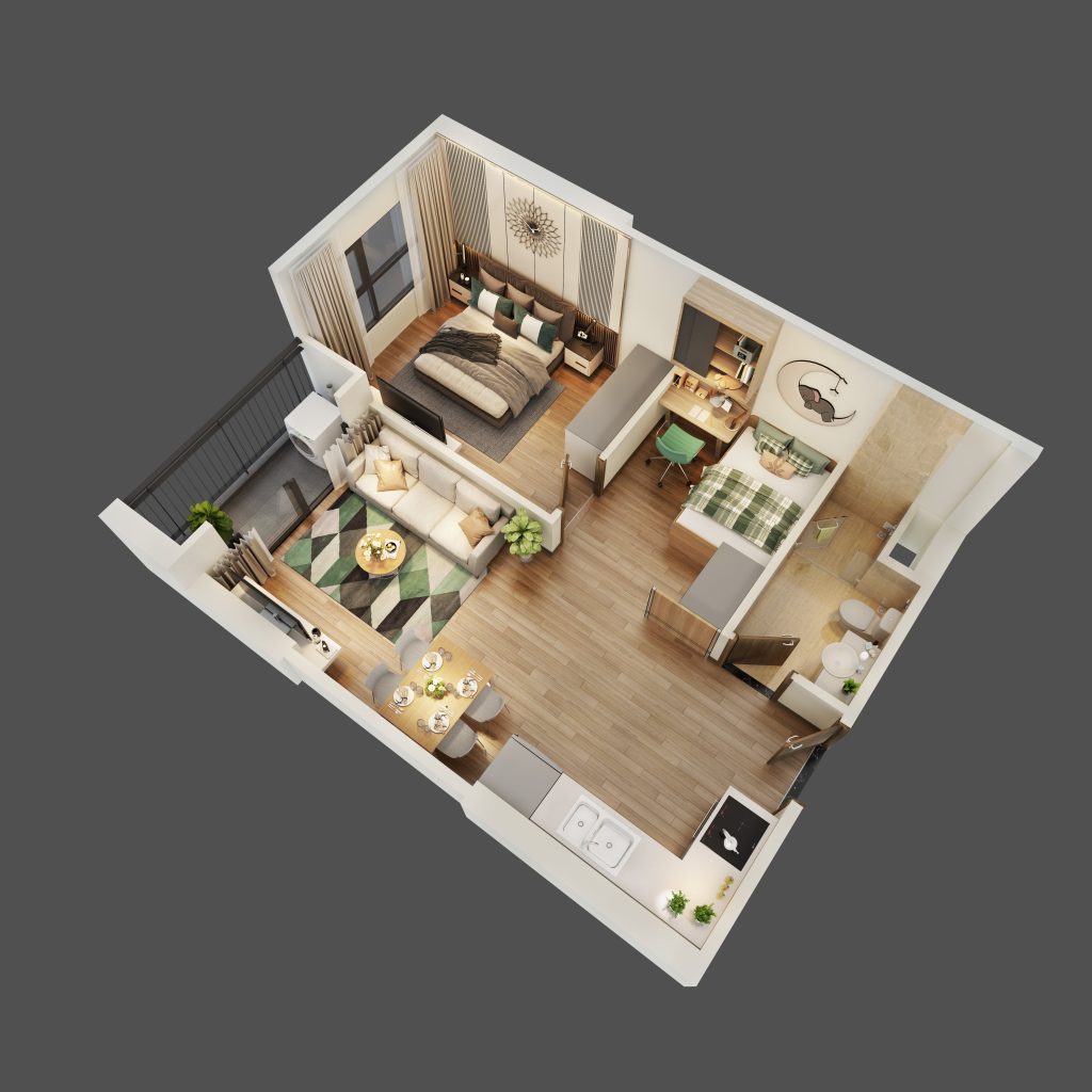 Thiết kế căn hộ 1PN+1 tối ưu về công năng sử dụng.