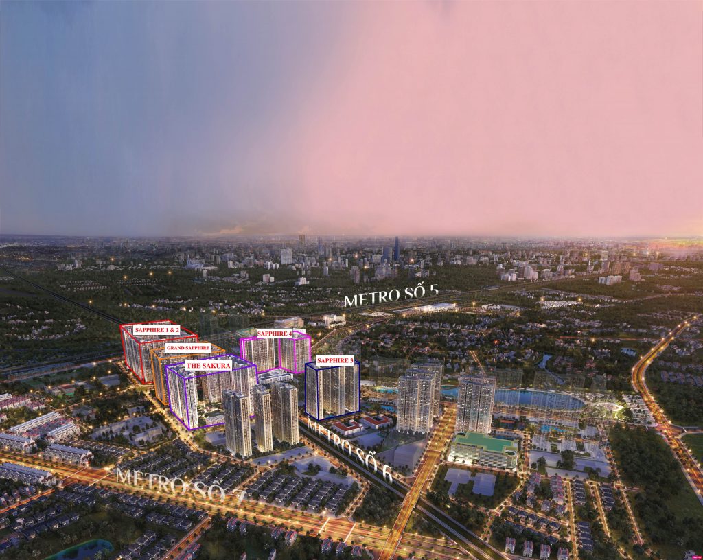 Phân khu Sakura Smart City còn có lợi thế khi nằm tiệm cận với ga Metro số 6 (tuyến đường sắt Ngọc Hồi – Nội Bài được hình thành trong tương lai) sẽ giúp cho cư dân di chuyển vô cùng thuận thiện. Cùng với đó là nằm ngay cạnh cây cầu vượt bắc ngang qua tuyến đường sắt hiện hữu (tương lai là tuyến Metro số 6) giúp cư dân kết nối dễ dàng tới công viên trung tâm, công viên thể thao, nhà để xe nổi 10 tầng, phân khu Ruby đẳng cấp.