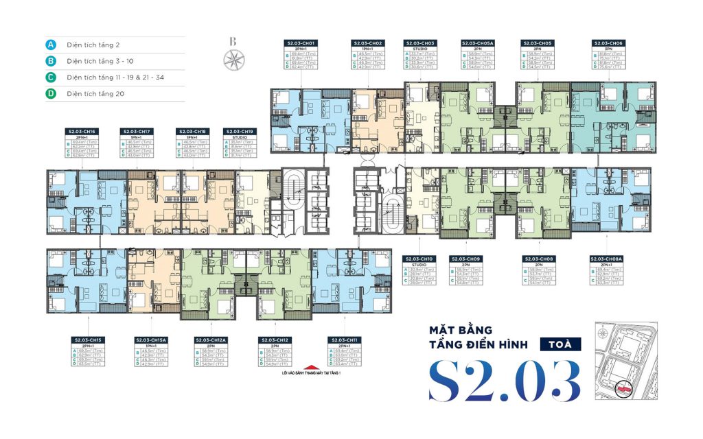 Quy mô phát triển: 4 tòa căn hộ S2.01, S2.02, S2.03, S2.05